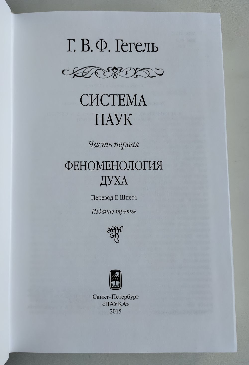 Гегель Г.В.Ф. Феноменология духа. Серия: Слово о сущем. Том 1. Перевод Г.Шпета. 3-е издание. СПб.: Наука, 2015г., 448с. Твёрдый переплёт, чуть увеличенный формат.