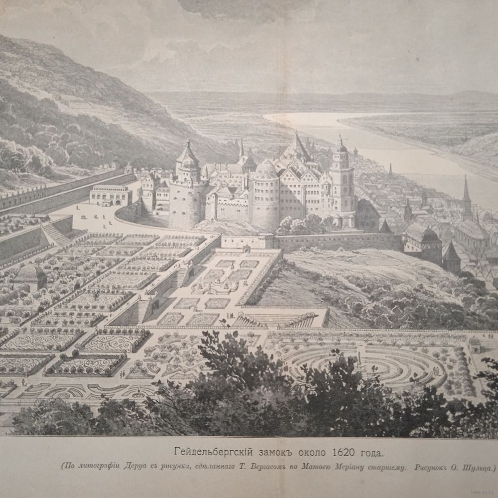 Гейдельбергский замокъ около 1620 года. Гравюра энциклопедическая 19-20век. 33х25см.СПБ. РАСПРОДАЖА КОЛЛЕКЦИИ.