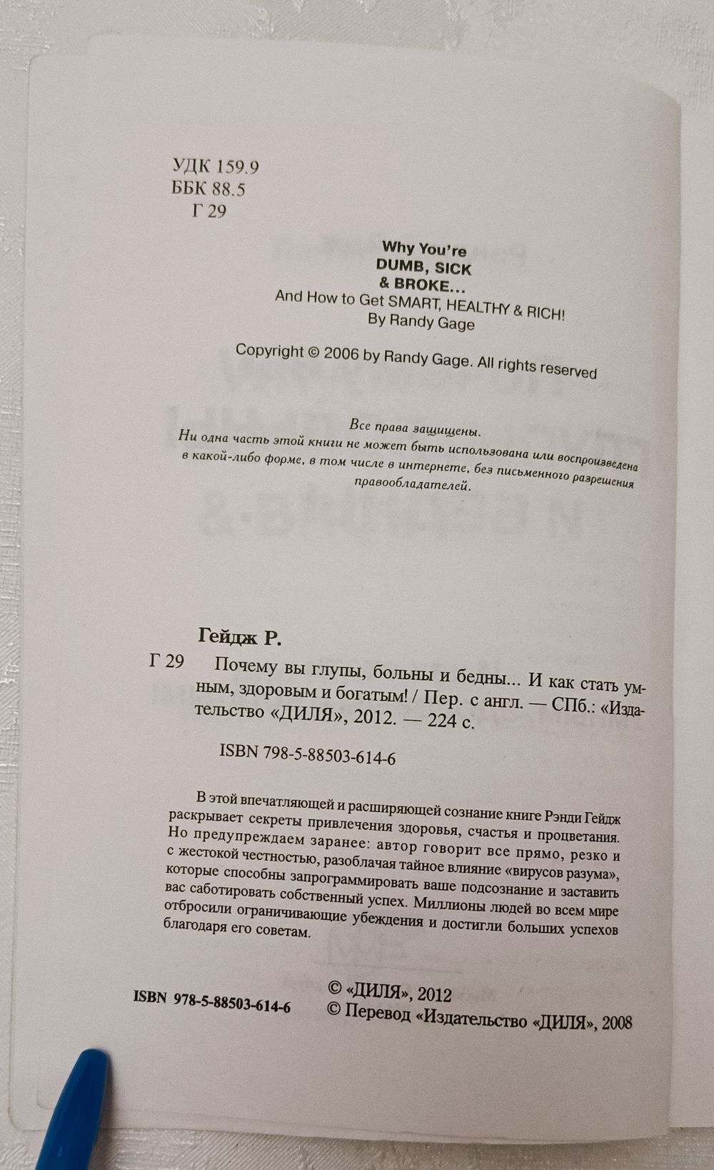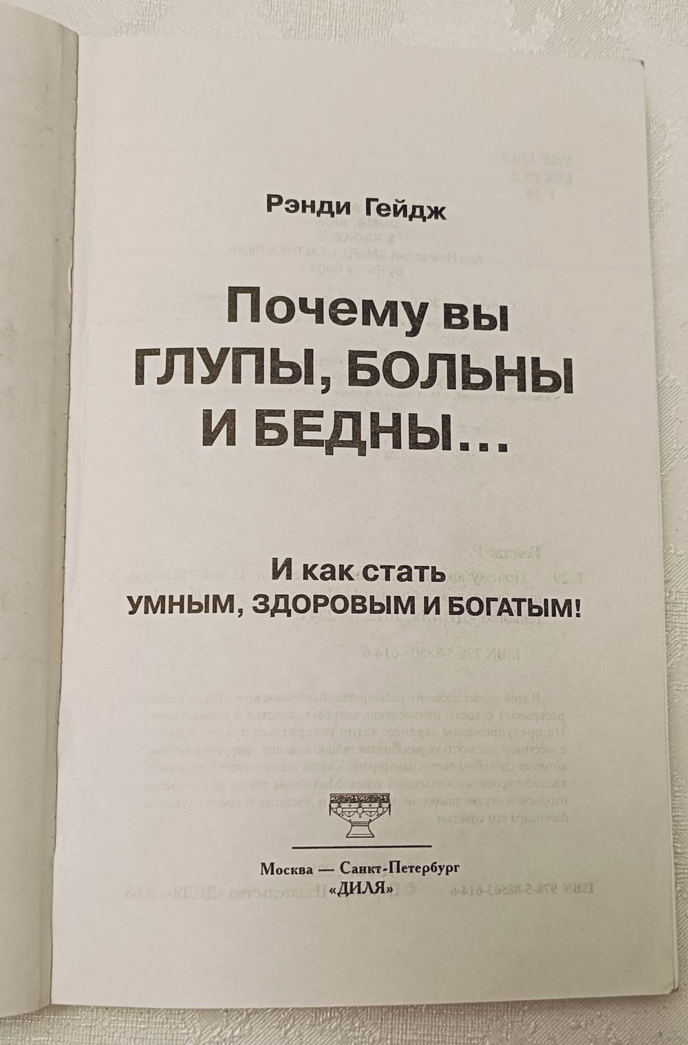 Гейдж Рэнди. Почему вы глупы, больны и бедны... И как стать умным, здоровым и богатым! СПб., Издательство «ДИЛЯ», 2012. — 224 с., мягкая обложка, обычный формат.