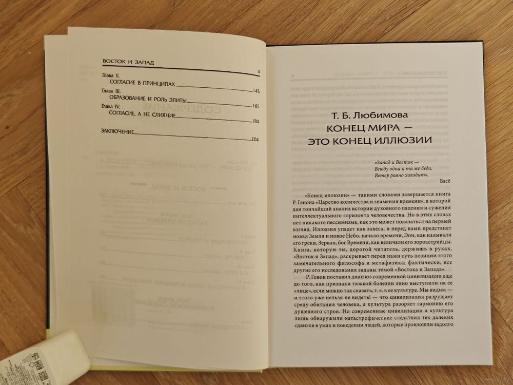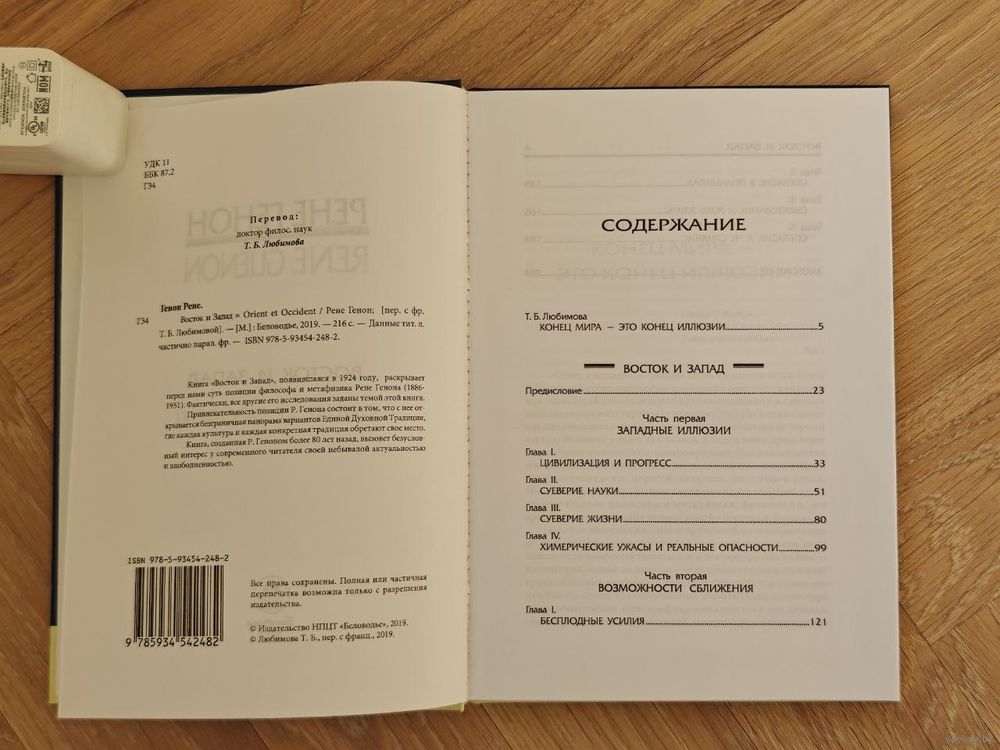 Книга `Восток и Запад`, появившаяся в 1924 году, раскрывает суть позиции Генона. Фактически, все другие его исследования заданы темой этой книги. Привлекательность позиции Генона состоит в том, что с нее открывается бесконечная панорама вариантов Единой Духовной Традиции, где каждая культура и каждая конкретная традиция обретают свое место. Книга, созданная Геноном более 80 лет тому назад, вызовет безусловный интерес своей актуальностью и злободневностью.