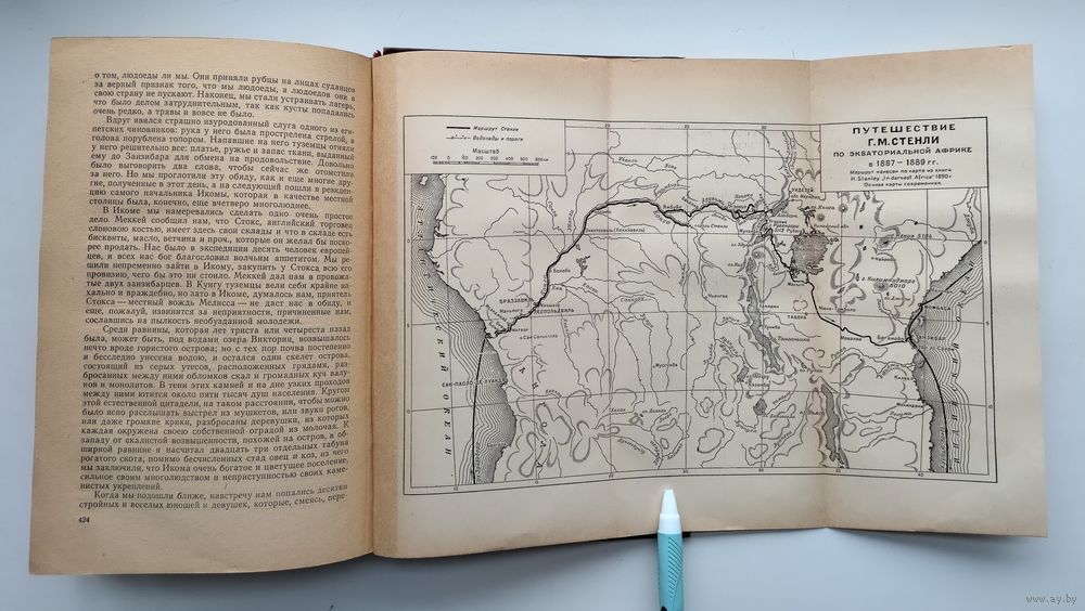 Стенли Г. В дебрях Африки. Издание 3-е. Перевод с англ. под редакцией и с примечаниями И.И. Потехина. Предисловие Г.В. Карпова. Оформление художника Н.А. Абакумова. М.: Географгиз, 1958г., 448 с. + портр. + карта-вкл. Твёрдый переплет. Обычный формат.