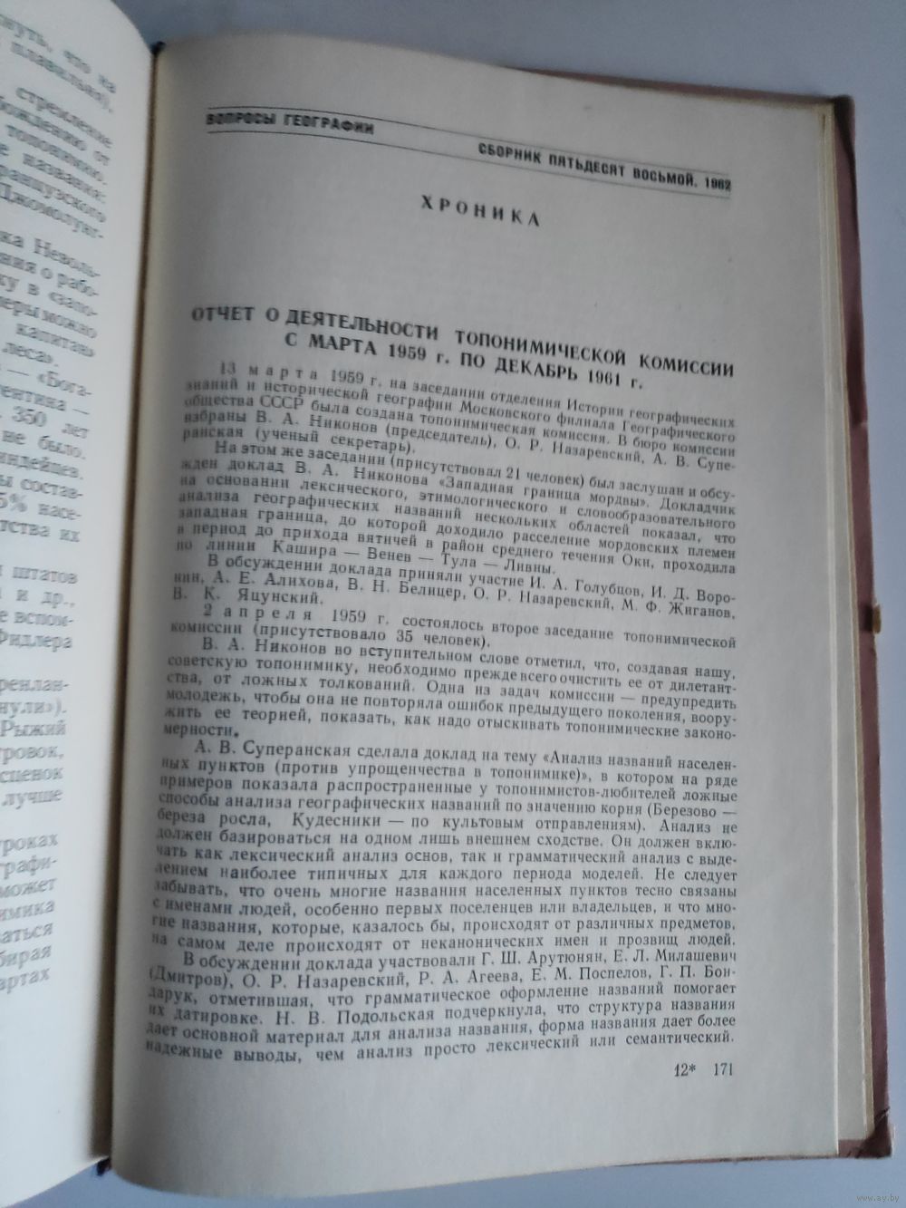 А. В. Суперанская. Отчет о деятельности топонимической комиссии с марта 1959 г. по декабрь 1961 г.