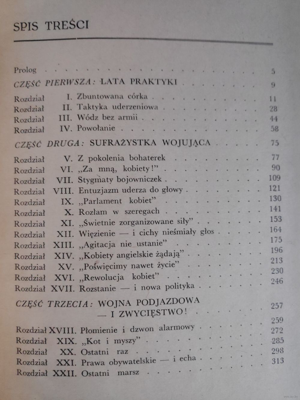 Kolejna pozycja z serii biografii wybitnych postaci historycznych. Życie i działalność Emeliny Pankhurst, założycielki i przywódczyni ruchu sufrażystek w Anglii, jest najbardziej widowiskowym i pełnym dramatyzmu fragmentem walki o równouprawnienie szerokich warstw społecznych, o prawa wyborcze kobiet. Autor z wielką wnikliwością odmalowuje obyczajowe i prawne upośledzenie kobiet w wiktoriańskiej Anglii, pierwsze odruchy buntu Emeliny, wpływ szczęśliwego małżeństwa na jej postawę, rozdarcie życia osobistego przez działąlność publiczną, niespożytą energię i poświęcenie w dążeniu do wytkniętego celu, doskonale zorganizowane kampanie protestacyjne oraz popularyzacyjne bojowniczek w długich spódnicach. Rząd i większość mężczyzn-obrońców tradycyjnego modelu rodziny, zaskakiwała wielokrotnie zaciekłość i wytrwałość kobiet, sprzeczna jakoby z ich subtelną, uległą naturą. Kilkudziesięcioletnią walkę Emeliny Pankhrust wieńczy pełny triumf w latach dwudziestych naszego wieku.
