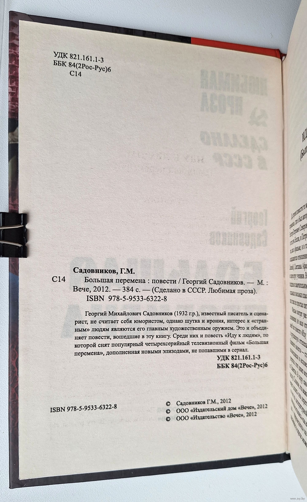 Георгий Михайлович Садовников (1932г.р.), известный писатель и сценарист, не считает себя юмористом, однако шутка и ирония, интерес к "странным" людям являются его главным художественным оружием. Это и объединяет повести, вошедшие в эту книгу. Среди них и повесть "Иду к людям", по которой снят популярный четырёхсерийный телевизионный фильм "Большая перемена", дополненная новыми эпизодами, не попавшими в сериал.