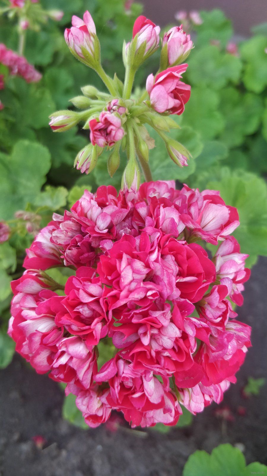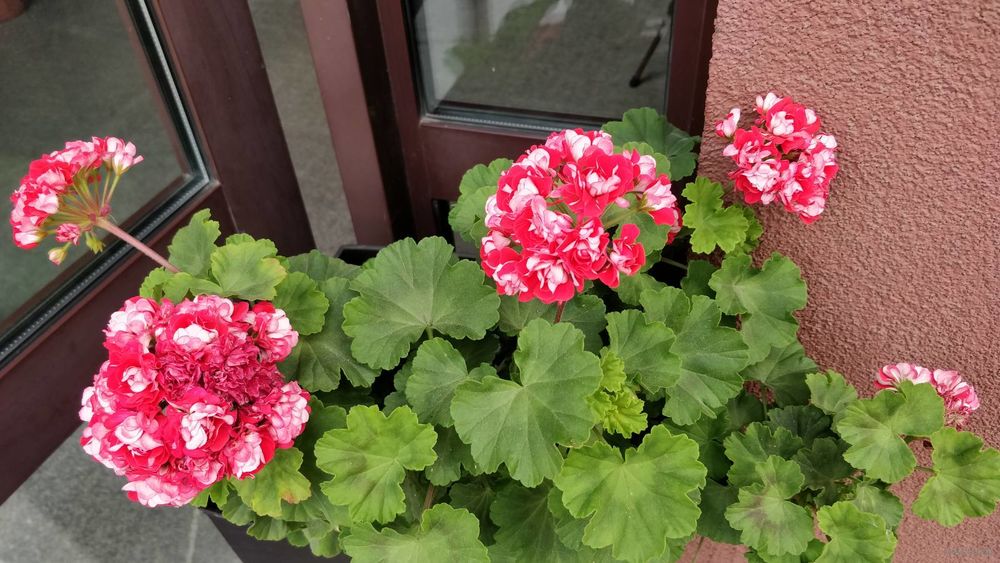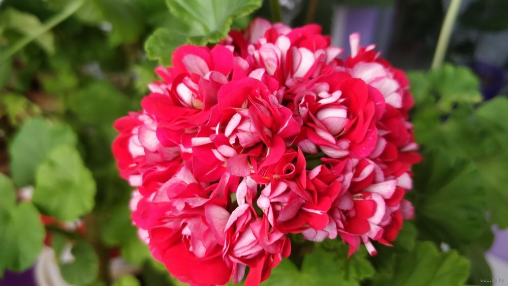 В продаже молодые нецветущие кустики розебудной герани красно-белой окраски, - сорт Селеста Джулия. Высота растений составляет 15-17 см.