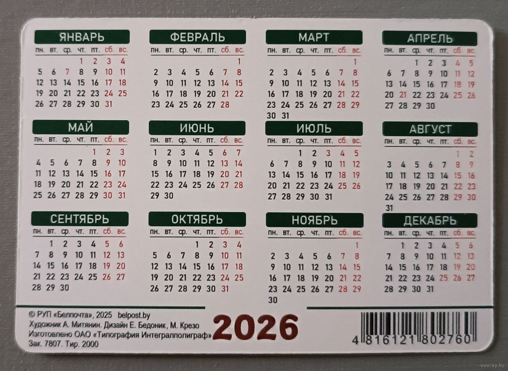 Герб Беларуси. Государственная символика. Календарик, глянец, 2026