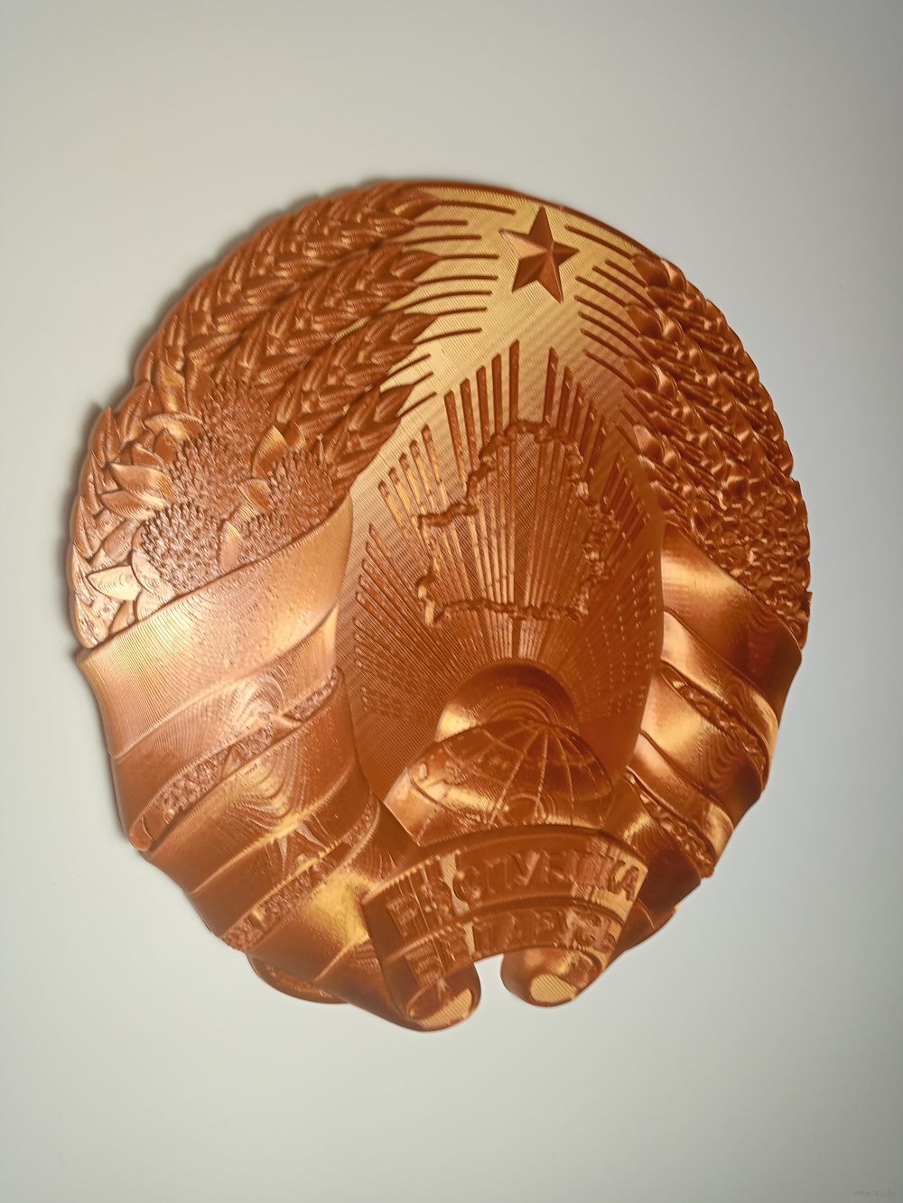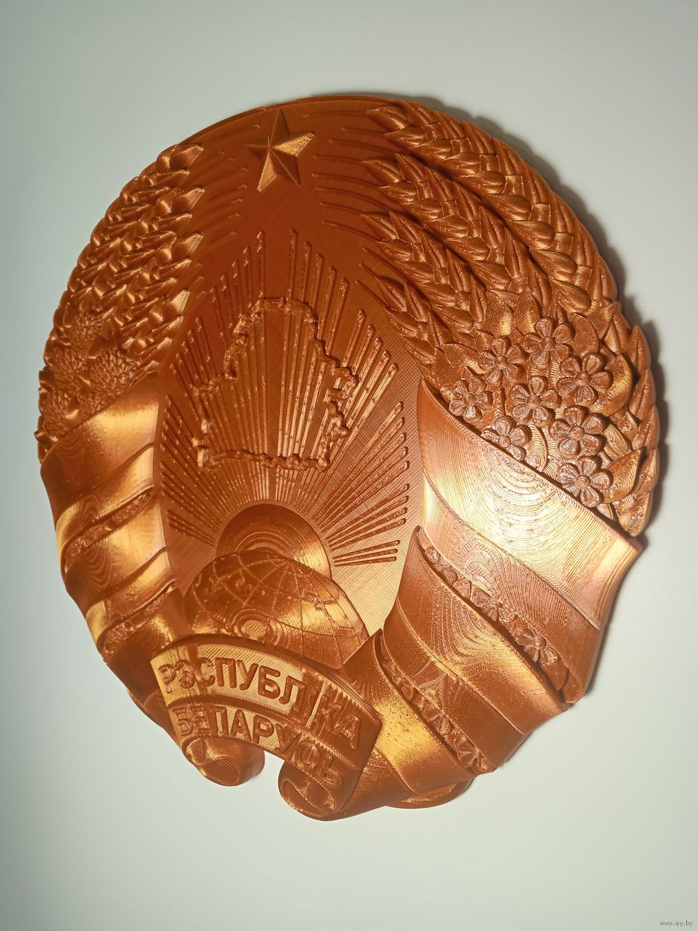 Герб Республики Беларусь, д.230, толщина 16мм. Цвет МЕДЬ. Пластик PLA Silk