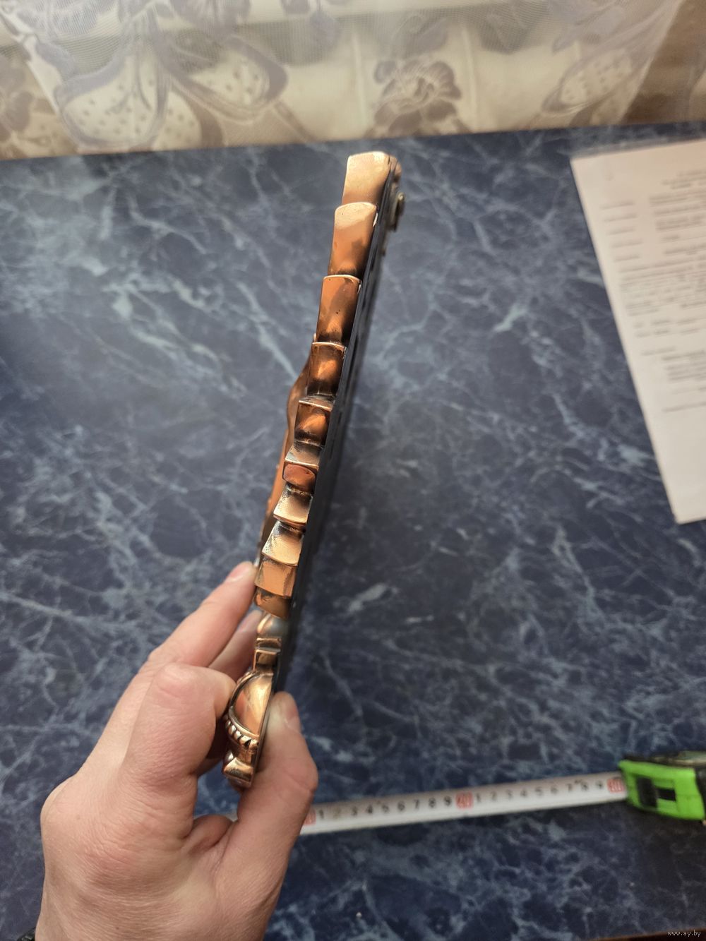 Внешний вид и размер на фото, пластик облицованый медью.