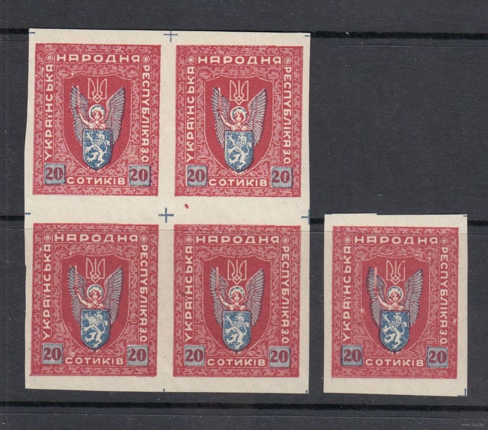 Герб Стандарт 1919 ЗУНР Западно-Украинская Народная Республика Гражданская война MNH 1 м Х 5 Лот