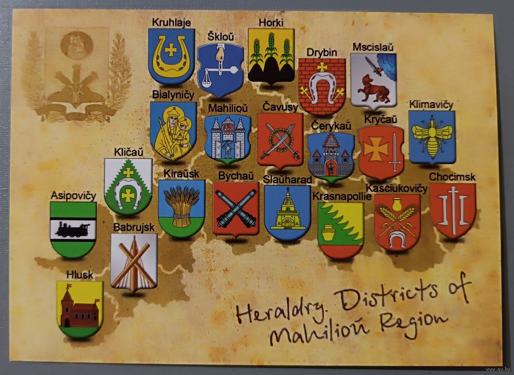 Гербы городов Беларуси. Юрий Подвербный. Авторская открытка, глянец