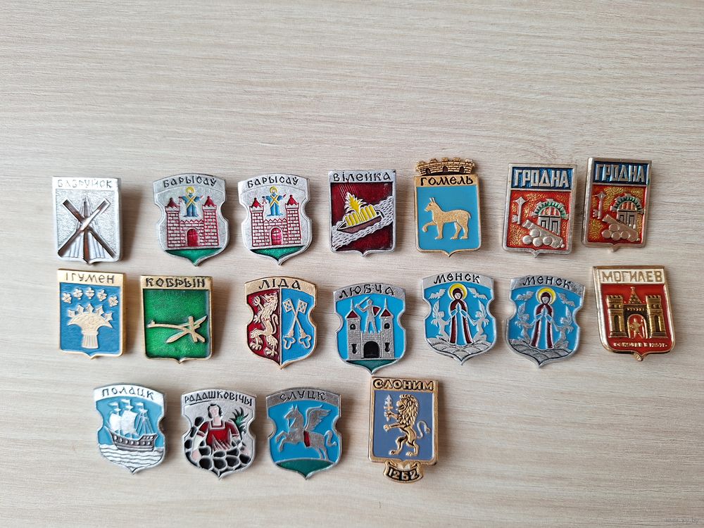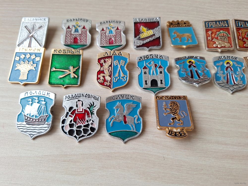 Гербы городов значки - Бобруйск Борисов Вилейка Гродно Гомель Минск Могилев Любча Игумен Кобрин Лида Полоцк Радашковичи Слуцк Слоним