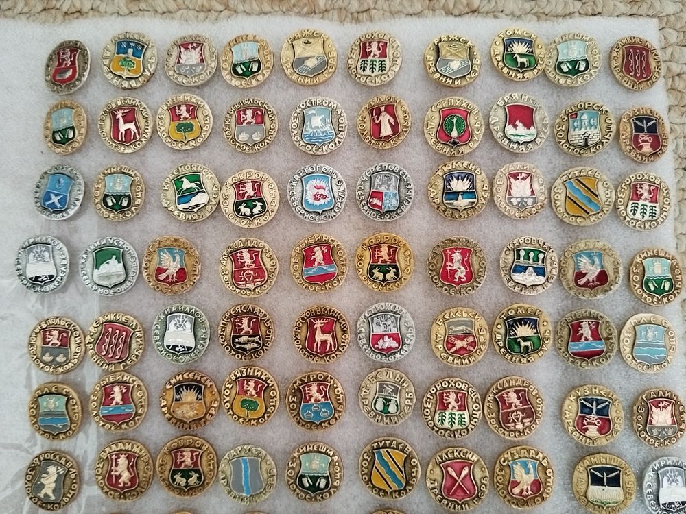 Гербы городов. Значки из серии Золотое кольцо, Серверное ожерелье, Древний герб, Древняя Русь. Цена указывается за один значок. #-III-08