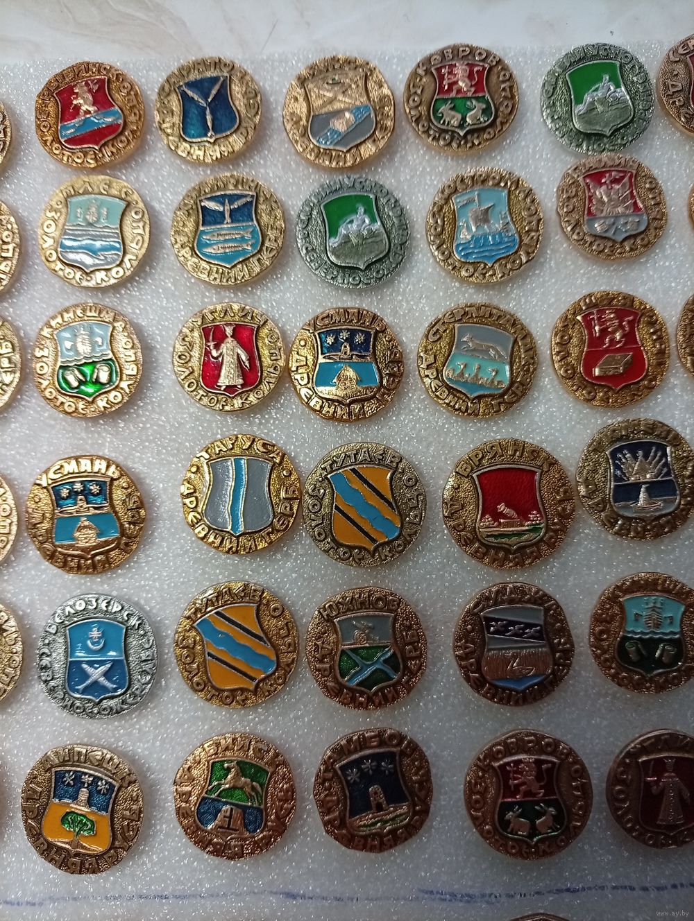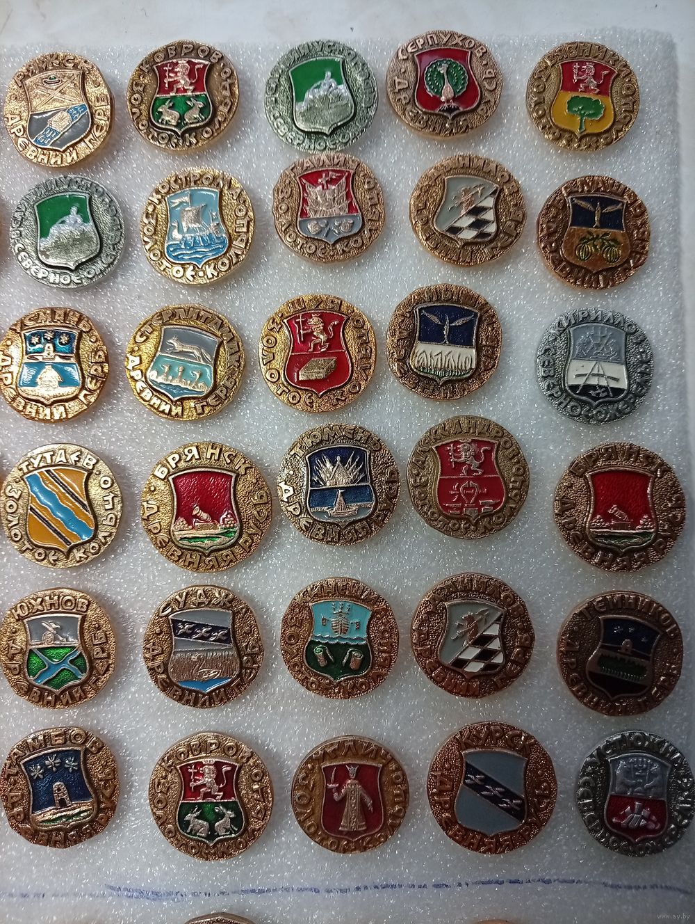 Гербы городов. Золотое кольцо. Древняя Русь. Северное ожерелье. Древний герб. Цена указывается за один значок. #-IV-02