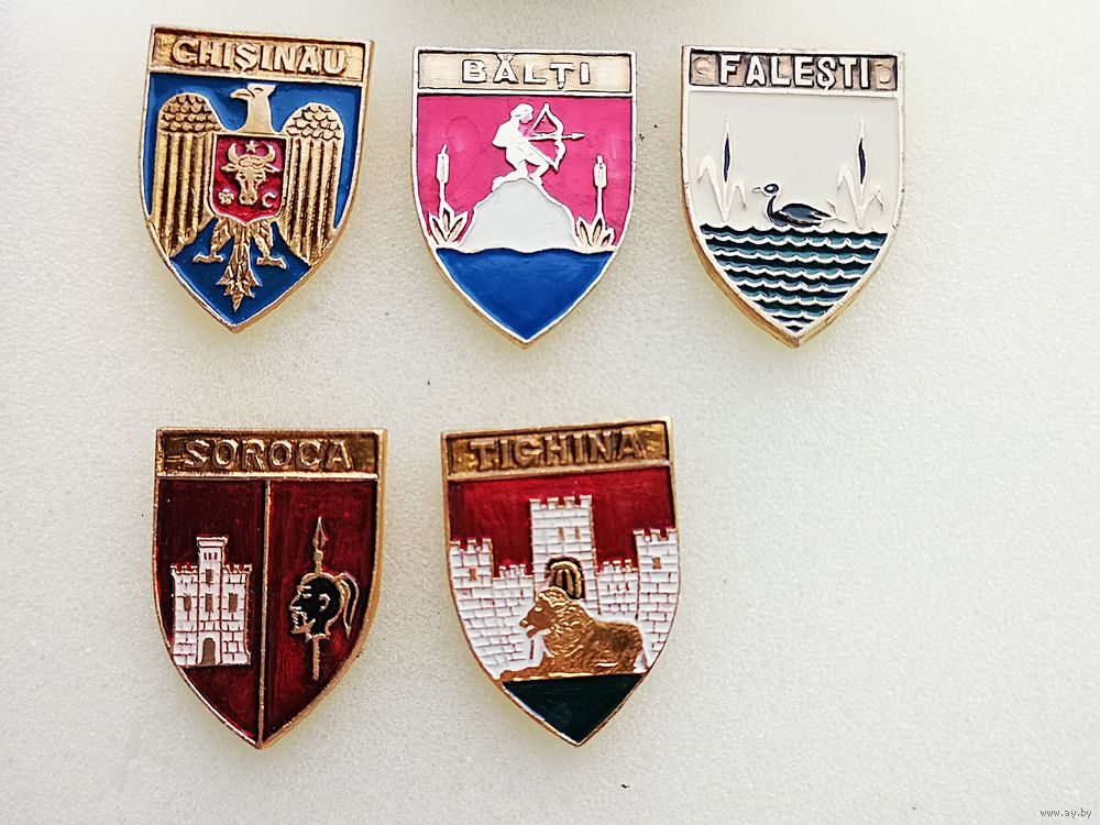 Гербы Молдовы румынского периода- Кишинев, Бельцы, Фалешты, Сорока, Тигина (КЭМЗ). Цена за знак