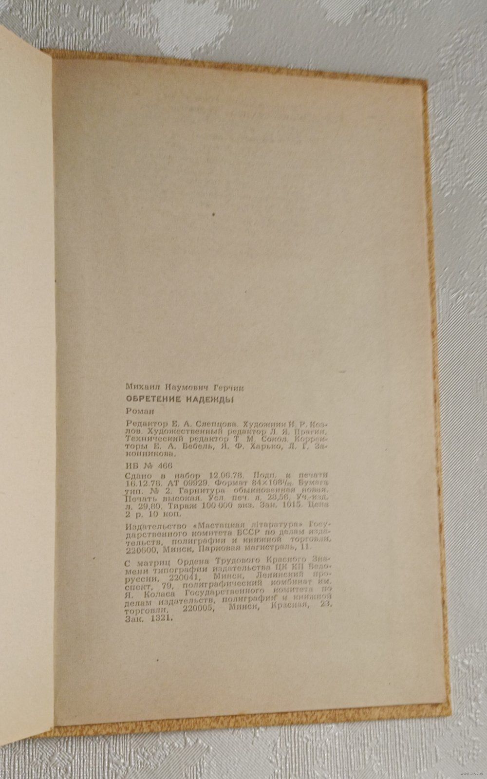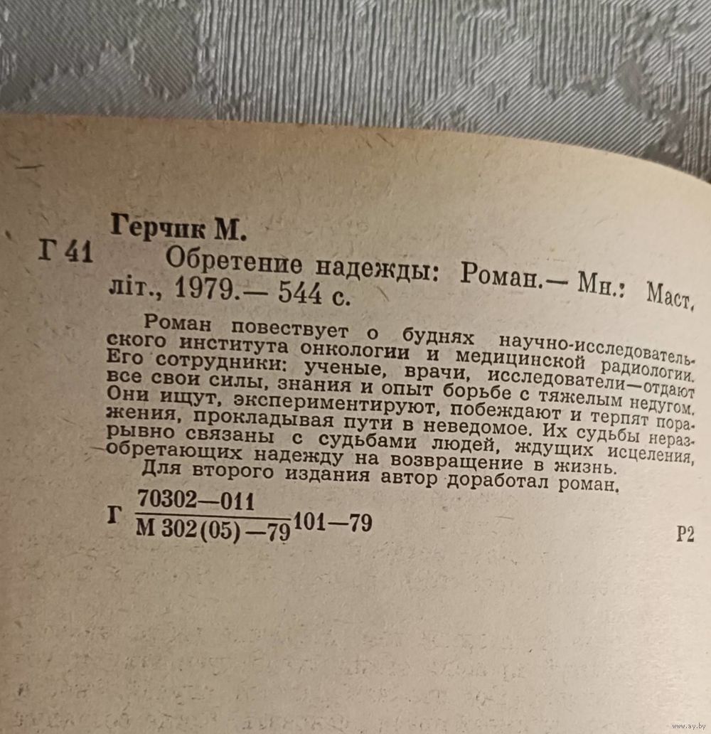Герчик М. Обретение надежды: Роман. - Мн.: Маст. літ., 1979.- 544 с., твердый переплет, обычный формат.