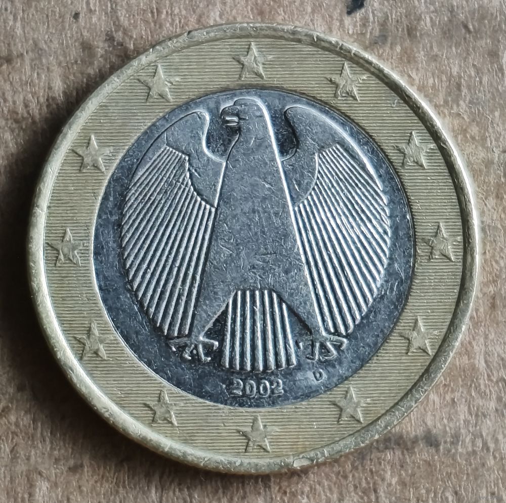 Германия 1 евро 2002 г., отметка мд. "D" - Мюнхен, KM# 213