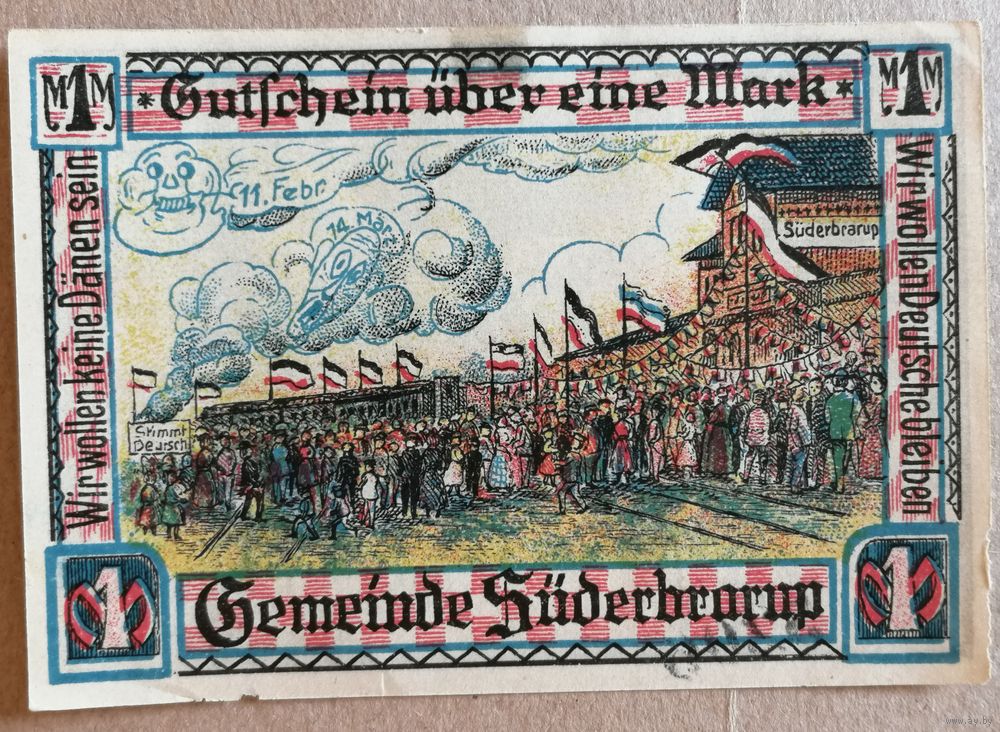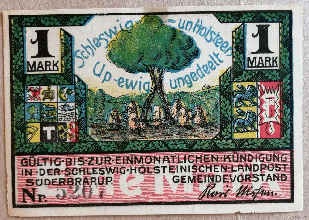 Германия 1 марка 1921 г Зюдербраруп (Schleswig-Holstein-Süderbrarup), 1294.4