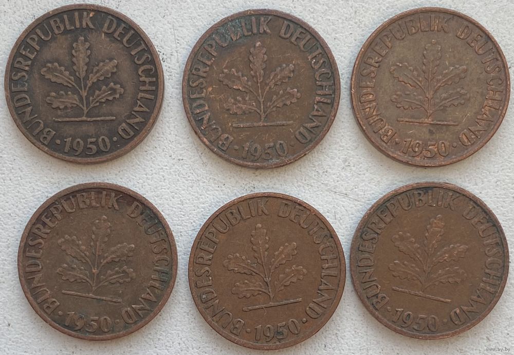 Германия 1 пфенниг 1950 г. J. Цена за 1 шт.