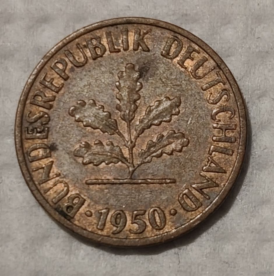 Германия 1 пфенниг, 1950 "J" - Гамбург (14-15-33)