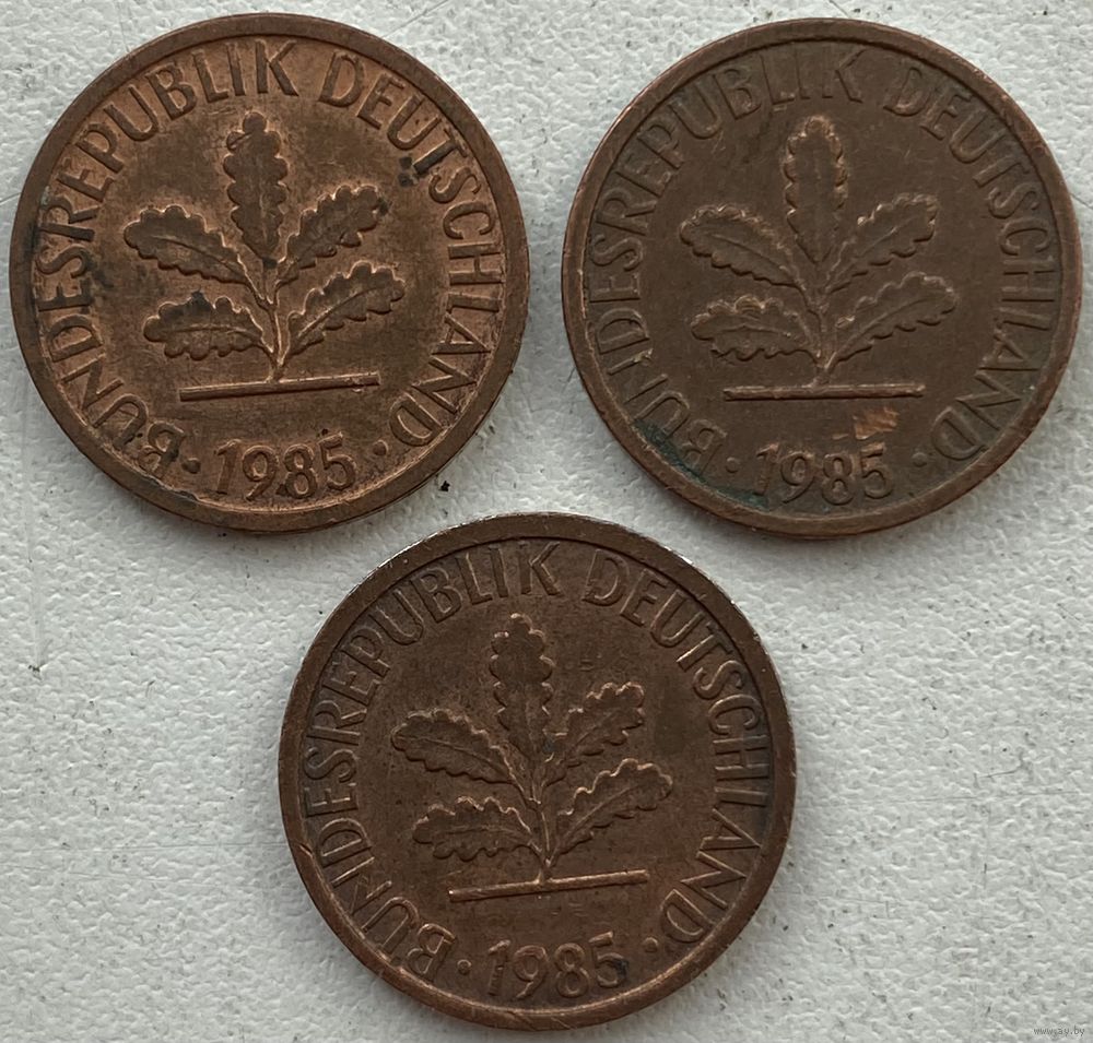Германия 1 пфенниг 1985 г. G. Цена за 1 шт.
