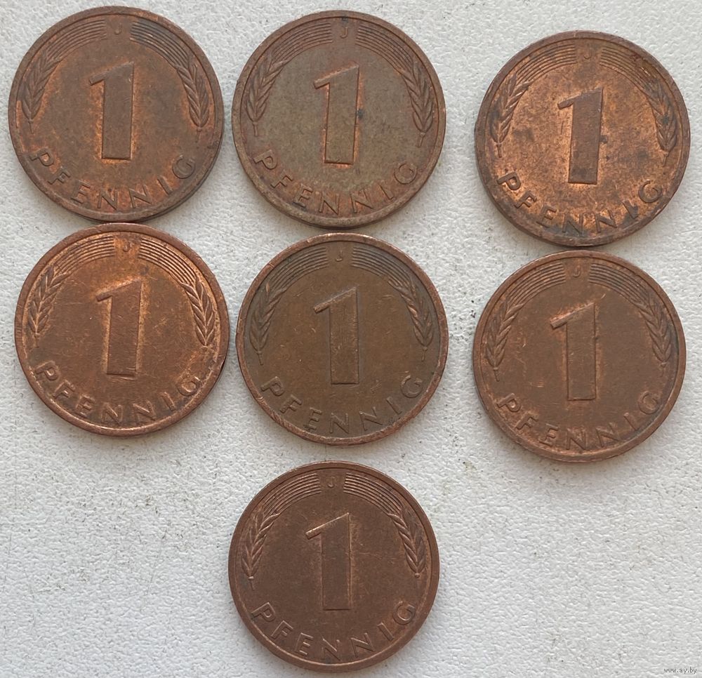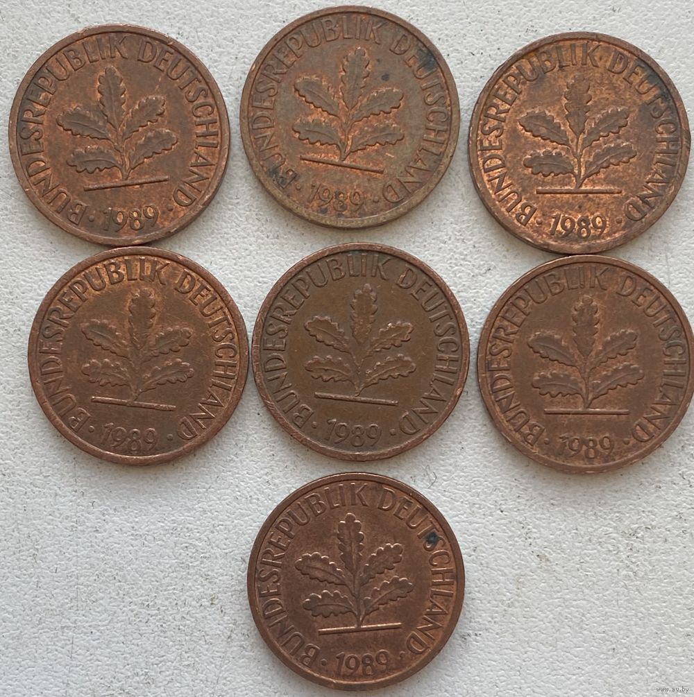 Германия 1 пфенниг 1989 г. J. Цена за 1 шт.