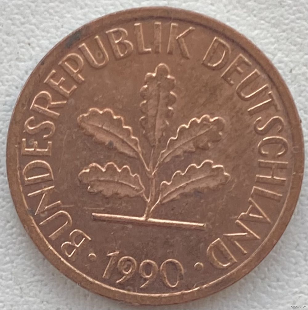 Германия 1 пфенниг 1990 г. D