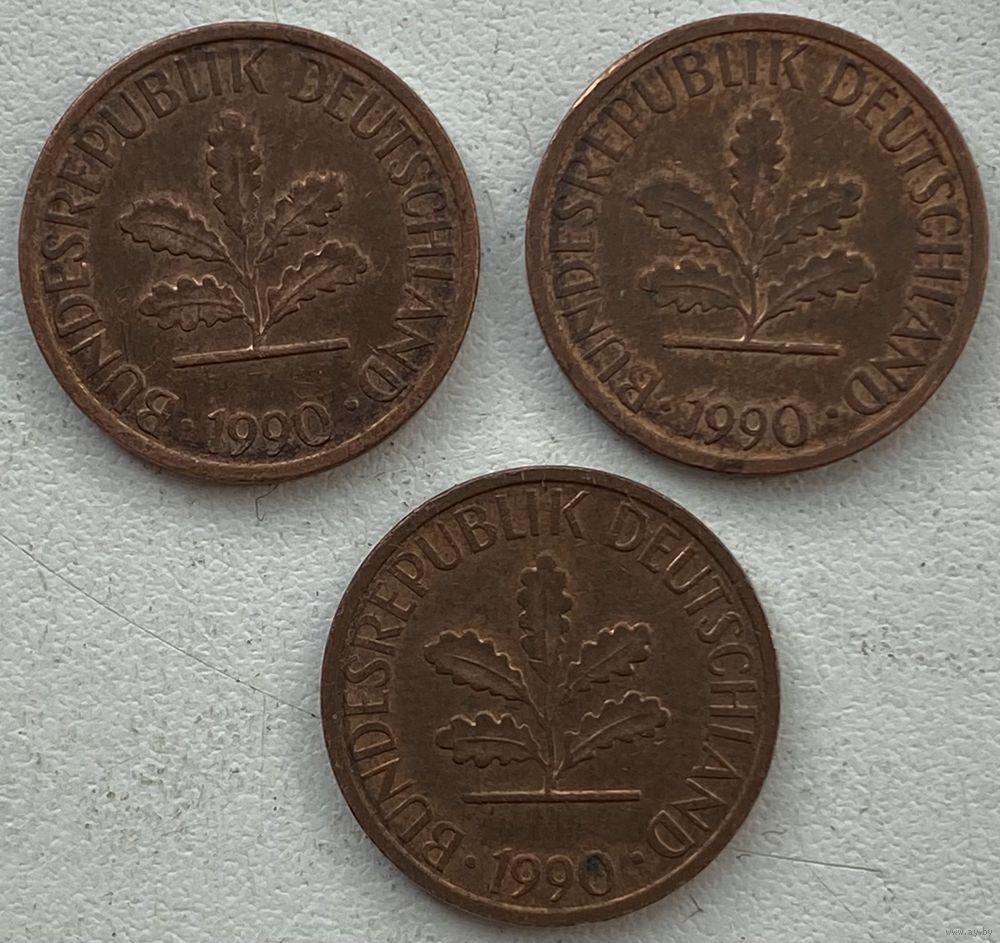 Германия 1 пфенниг 1990 г. D. Цена за 1 шт.