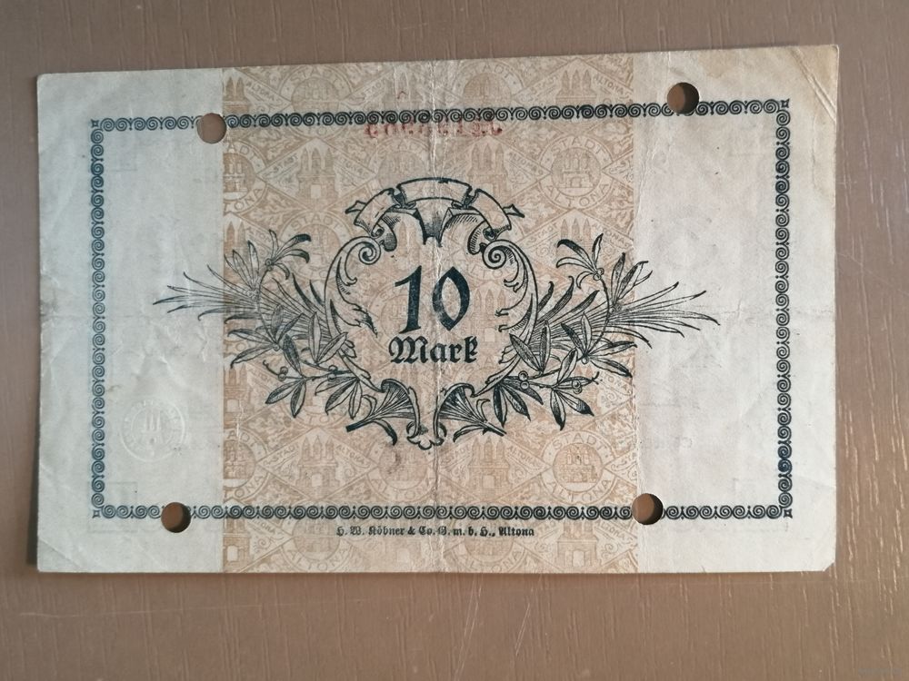 Германия, 10 марок, 1918 год, Альтона Hamburg (HAM), 012.05., B3, В/з Kreuzmaander (135 х 88 мм),