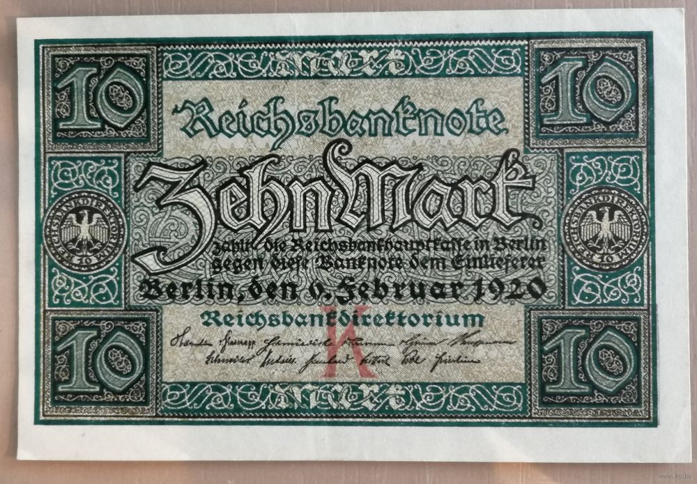 Ro.63a DEU-72a 10 марок 1920 Udr.-Bst. K. Серии W, X, Y, Z