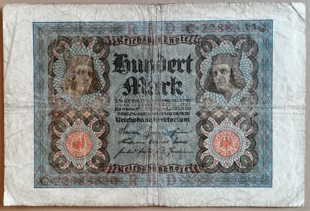 Германия 100 марок 1920 г, Ro.67а, DEU-75а, Х Х.#7. Udr.-Bst. серии A, B, C, D, E, F, G, H