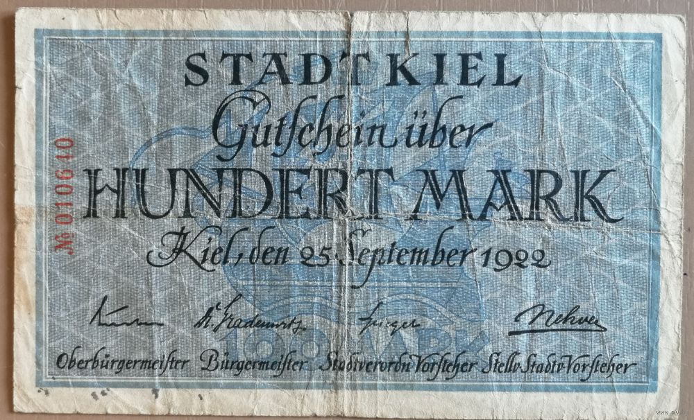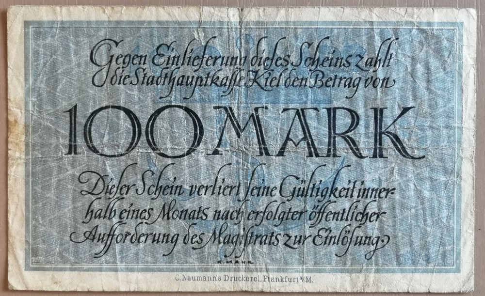 Германия 100 марок 1922 год , город Киль, 2295.1a . B4