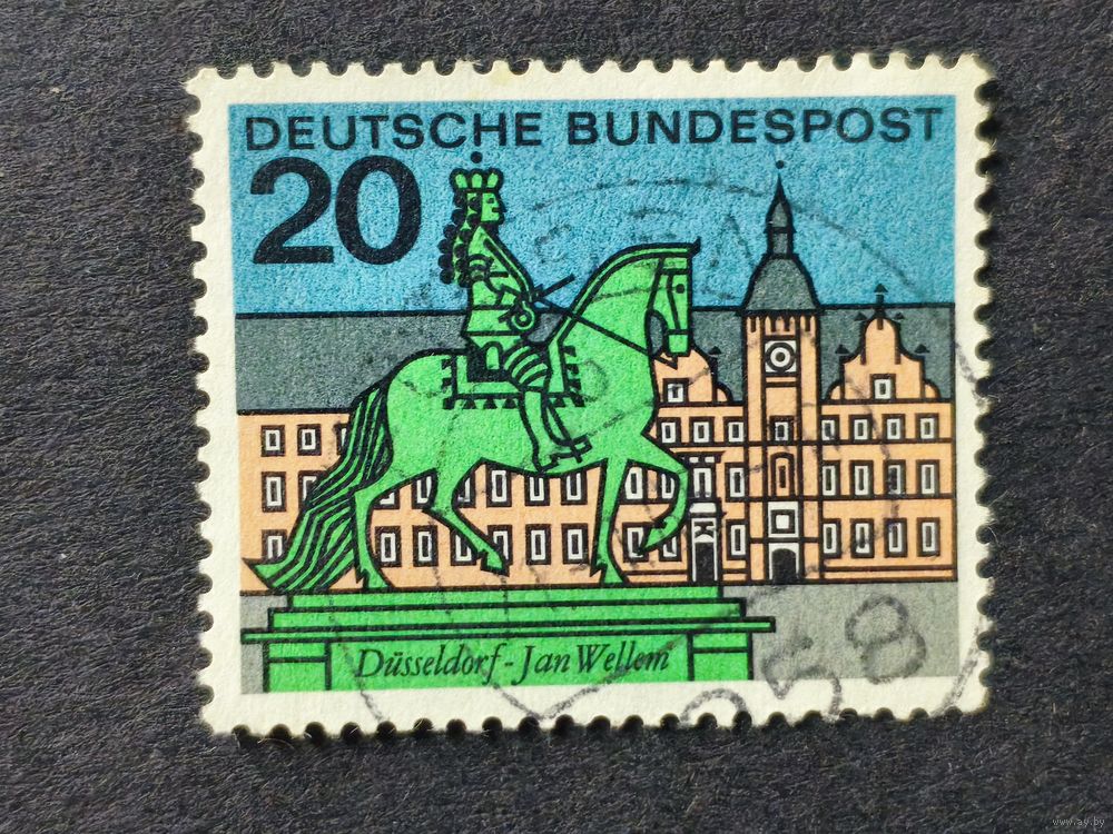 Германия 1964. Столицы земель Федеративной Республики Германия. Памятник Яну Веллену и ратуша, Дюссельдорф