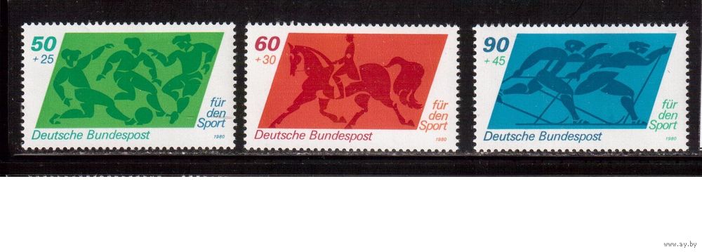 Германия -1980,(Мих.1046-1048) ** , Спорт, Футбол, Лошади
