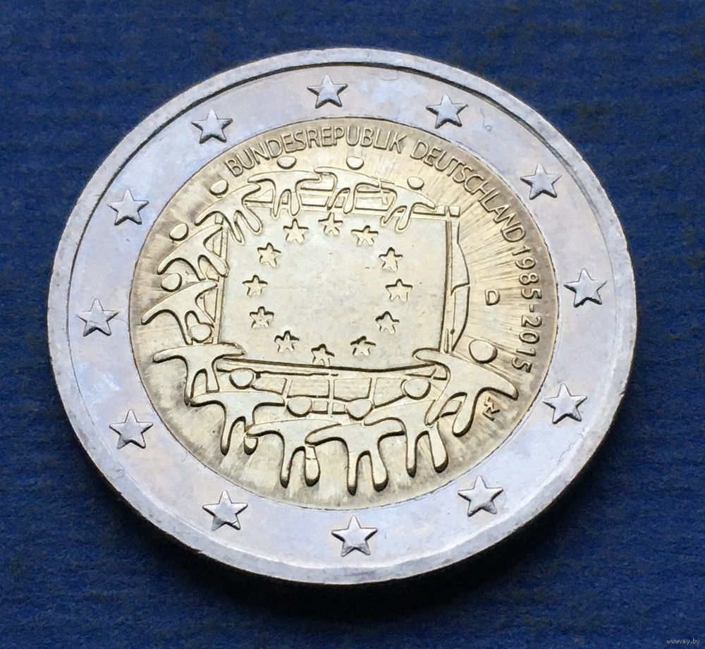Германия 2 евро 2015 D 30 лет флагу Европейского союза