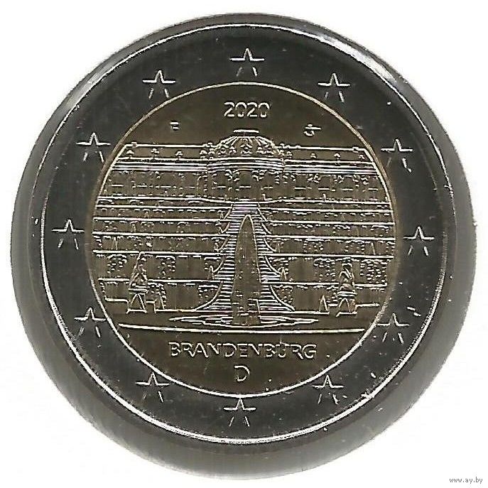 Германия 2 евро, 2020 F Бранденбург, дворец Сан-Суси в Потсдаме aUNC