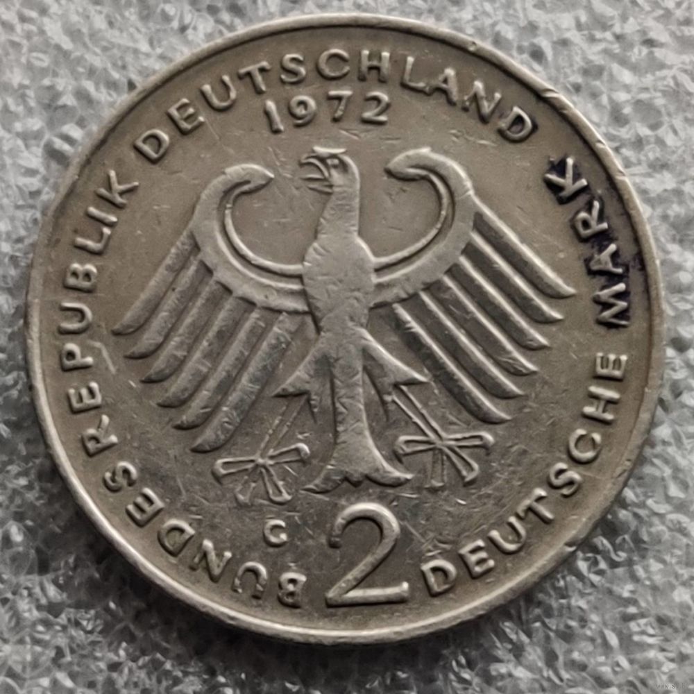 Номер KM # A127 Страна Германия Период Западная Германия (ФРГ) (1948 - 1989) Валюта Немецкая марка Вид чекана Юбилейные монеты Номинал 2 марки Год 1970 - 1987 Наименование Теодор Хойс, 20 лет Федеративной Республике (1949-1969) Гурт Надпись Описание гурта 'EINIGKEIT UND RECHT UND FREIHEIT' (Unity and Justice and Freedom) Форма Круг Отношение авс/рев Медальное (0°) Материал Медно-никелевый сплав Вес (g) 7 Диаметр (mm) 26,75 Толщина (mm) 1,79