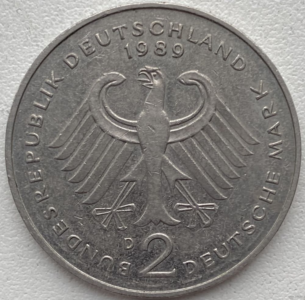 Германия 2 марки 1989 г. D. Курт Шумахер. 30 лет Федеративной Республике (1949-1979)