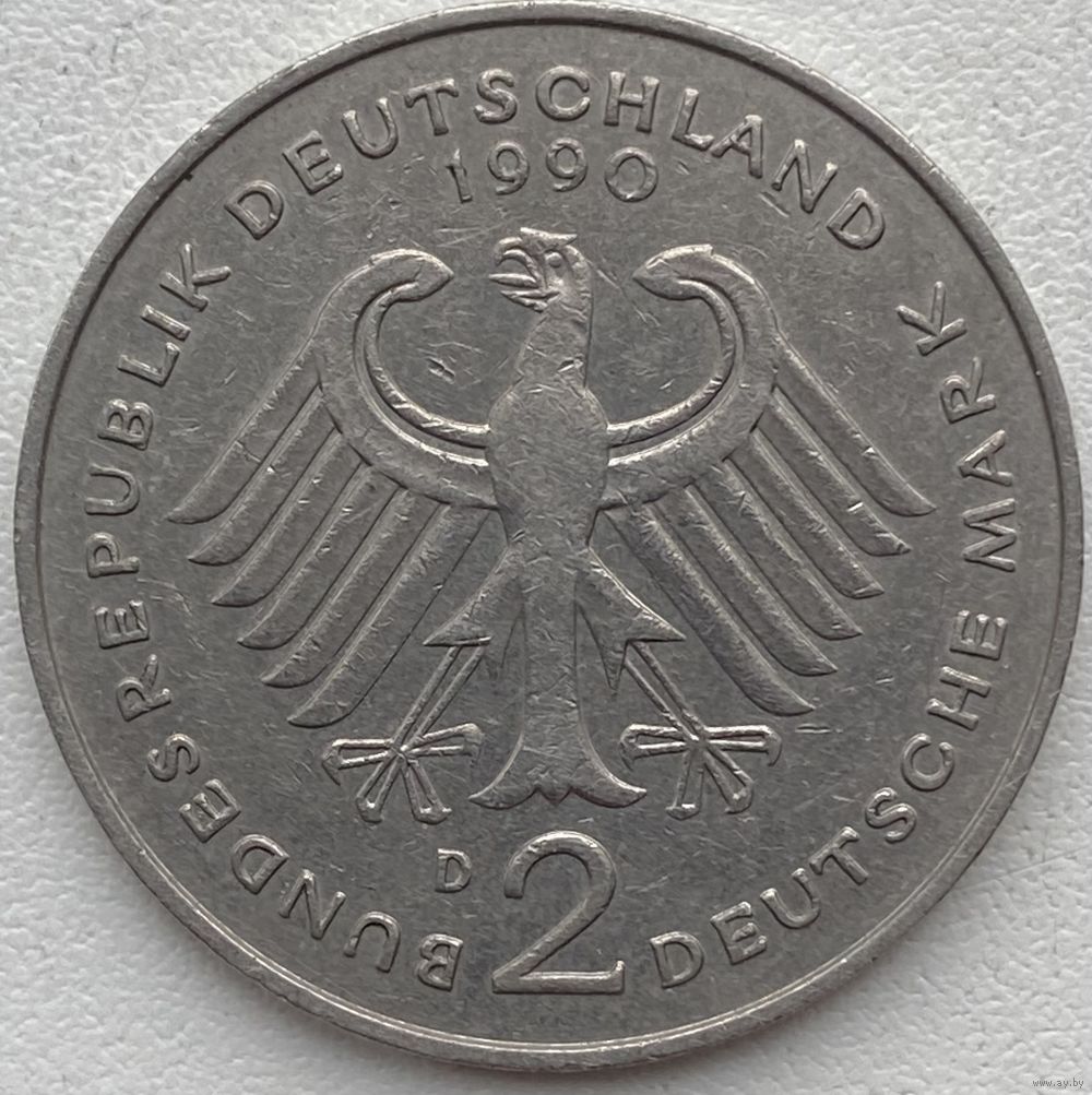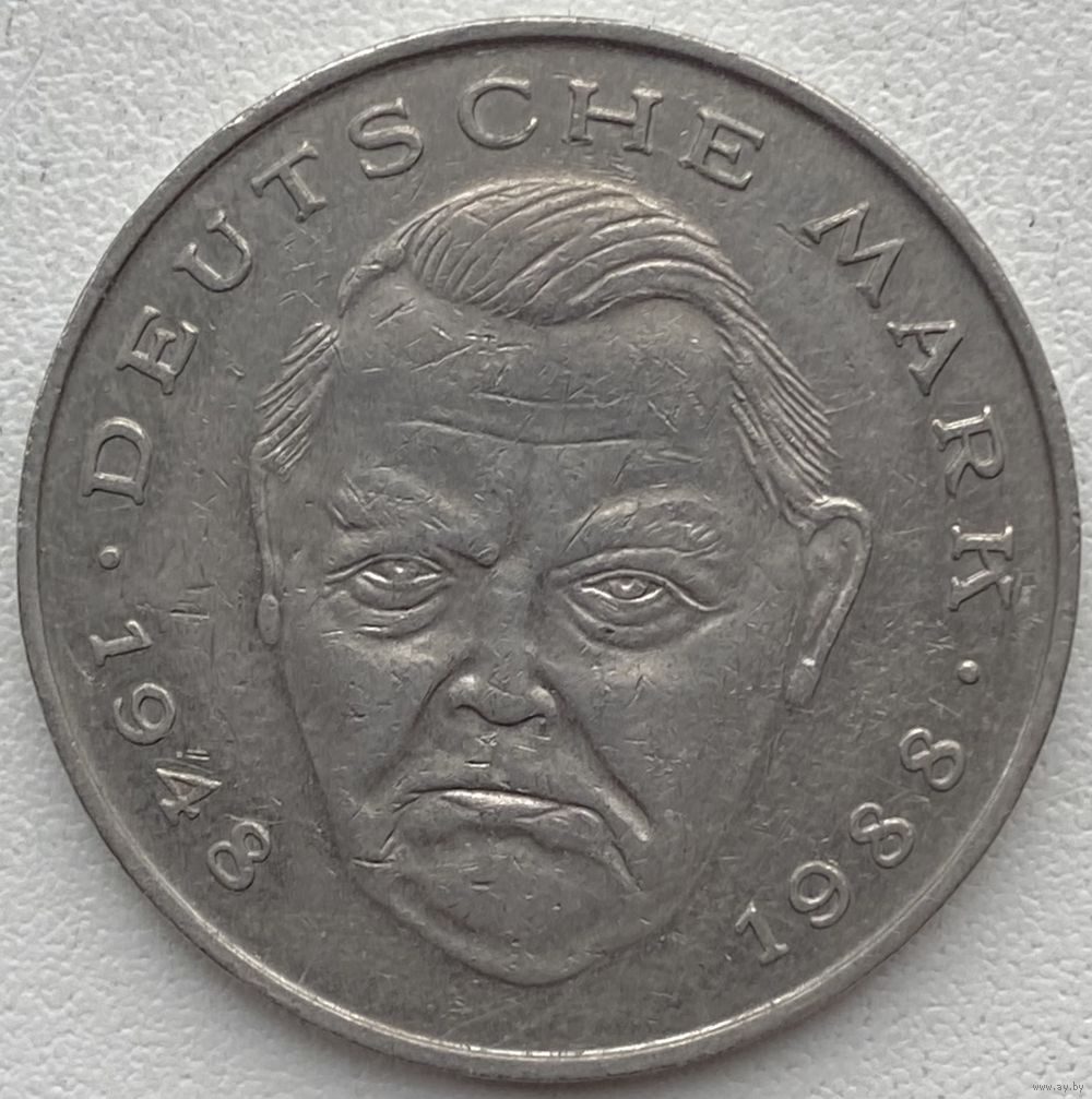 Германия 2 марки 1990 г. D. Людвиг Эрхард. 40 лет Федеративной Республике (1948-1988)