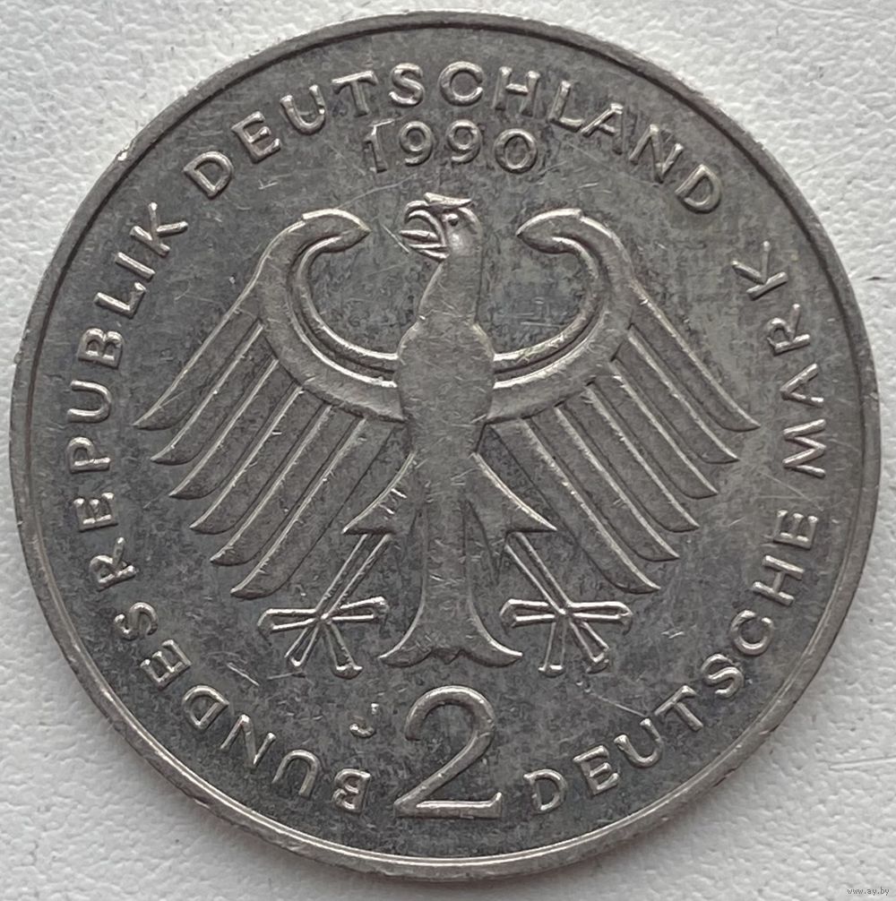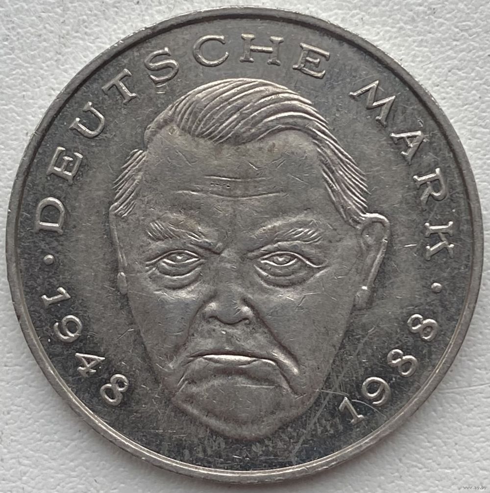 Германия 2 марки 1990 г. J. Людвиг Эрхард. 40 лет Федеративной Республике (1948-1988)