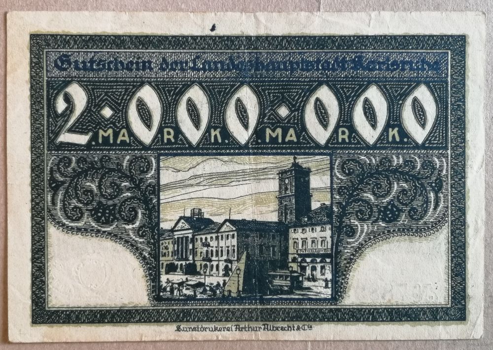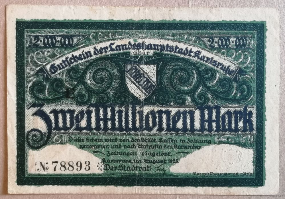 Германия 2 миллиона марок 1923 г Карлсруэ (Karlsruhe) XF, В/З