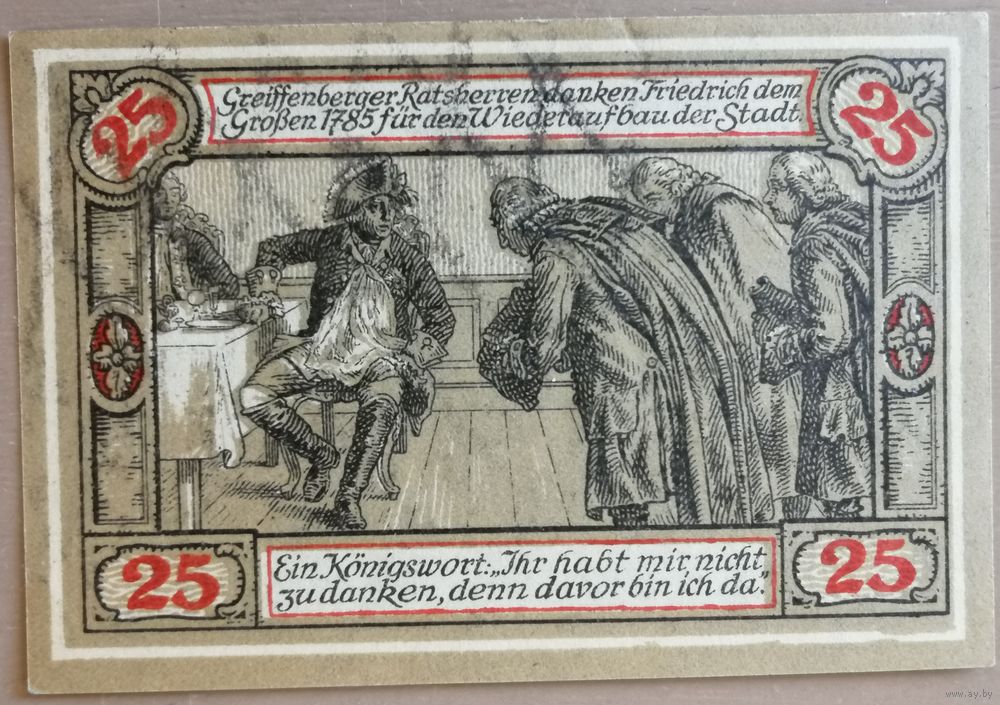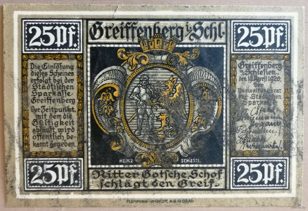 Германия 25 пфеннигов 1920 г Грейффенберг (Greiffenberg) 470.2, B1 вар. 4, aUNCGreiffenberg in Schlesien - Грейффенбер, провинция Силезия.