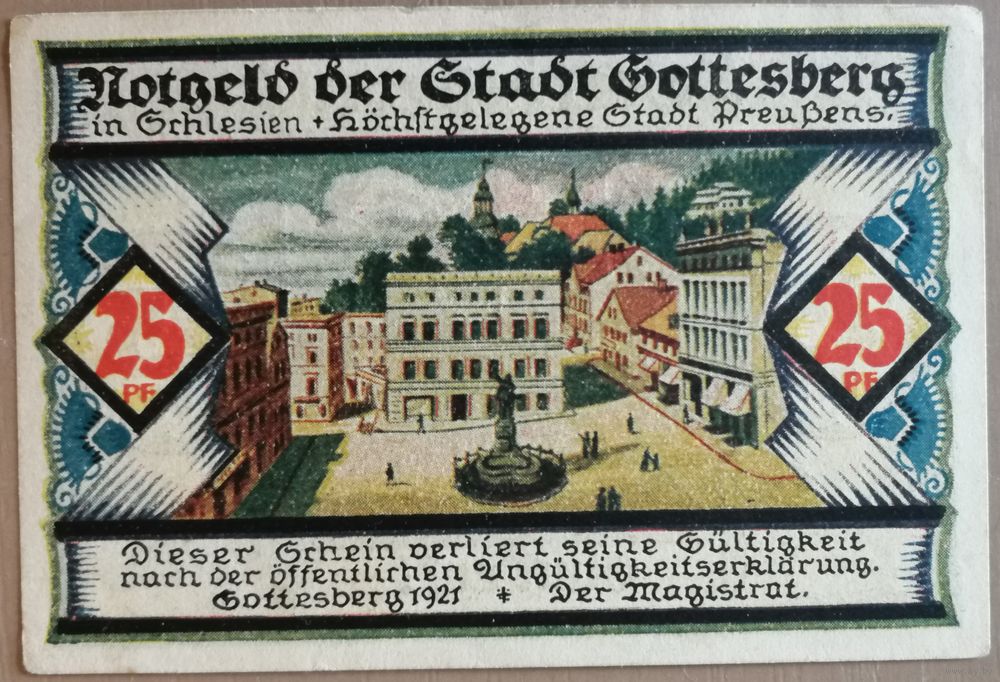 Германия 25 пфеннигов 1921 г Готтесберг (Notgeldschein der Stadt Gottesber), aUNC