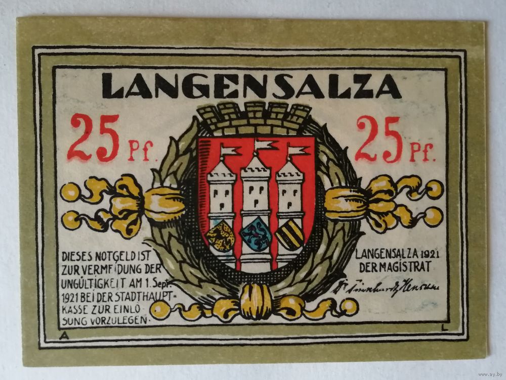 Германия, нотгельды, 1921 год, город Лангензальца, 25 пфенигов.