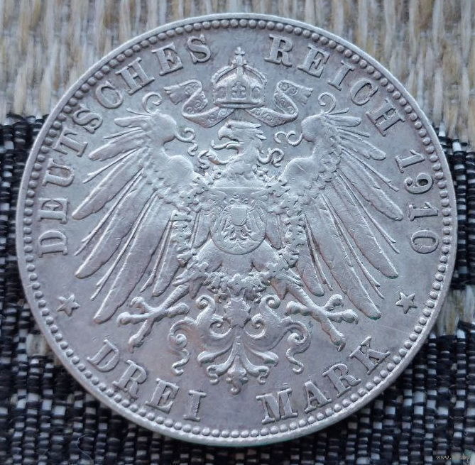 Германия 3 марки 1910 года, D. Отто. Серебро! Сторгуй за свою цену, предложи обмен! S100