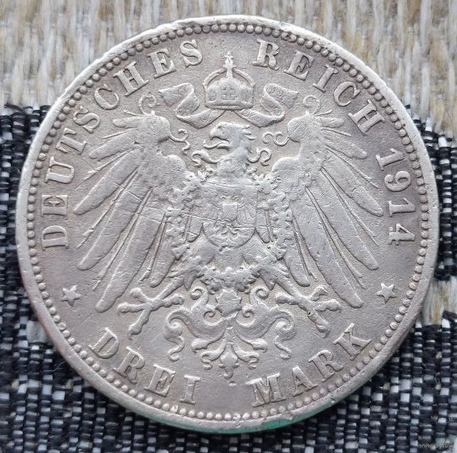 Германия 3 марки 1914 года, А. Серебро! Сторгуй за свою цену, предложи обмен! Y150