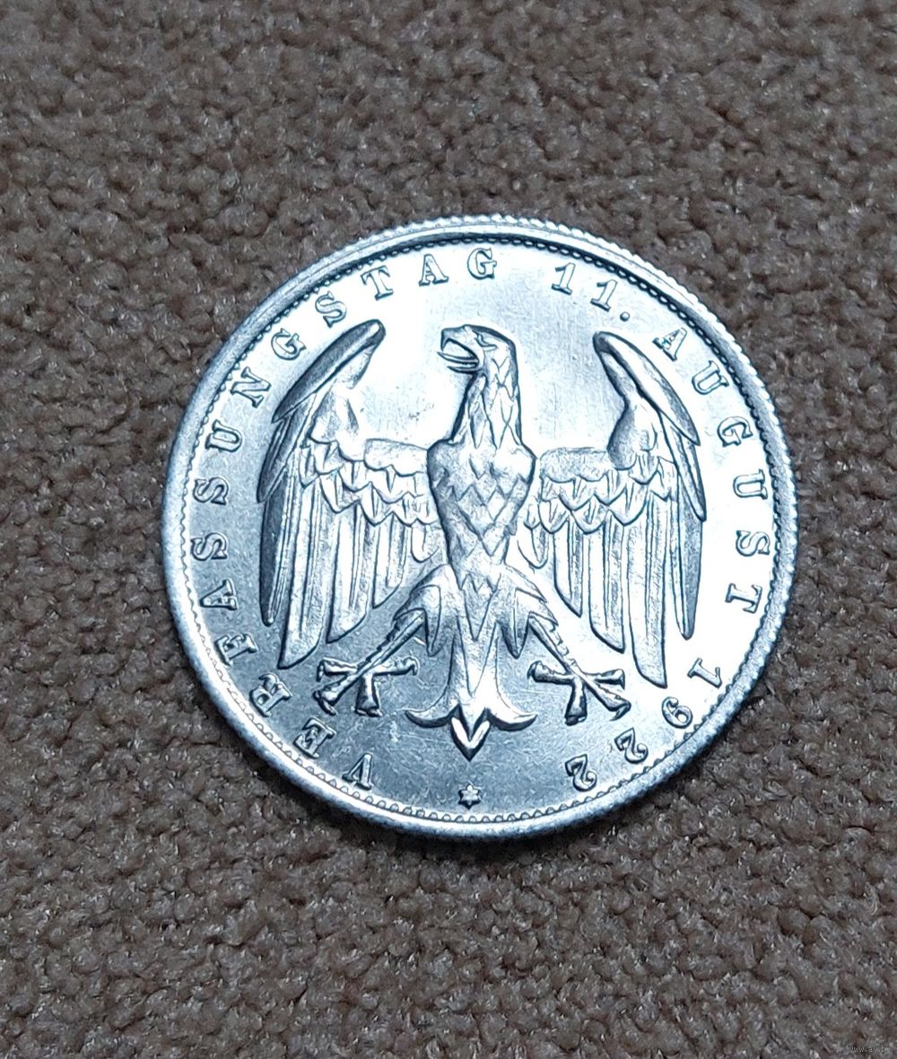 Германия 3 марки, 1922 J 3-я годовщина Веймарской конституции UNC