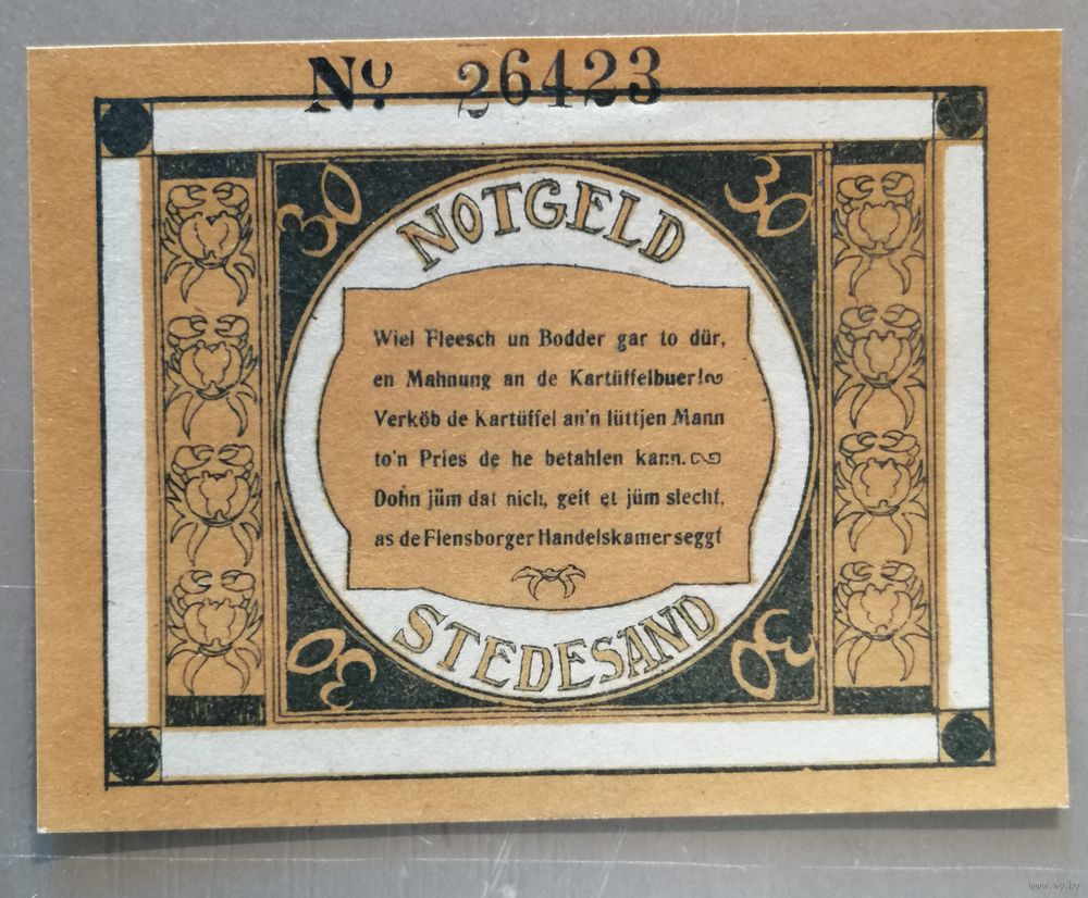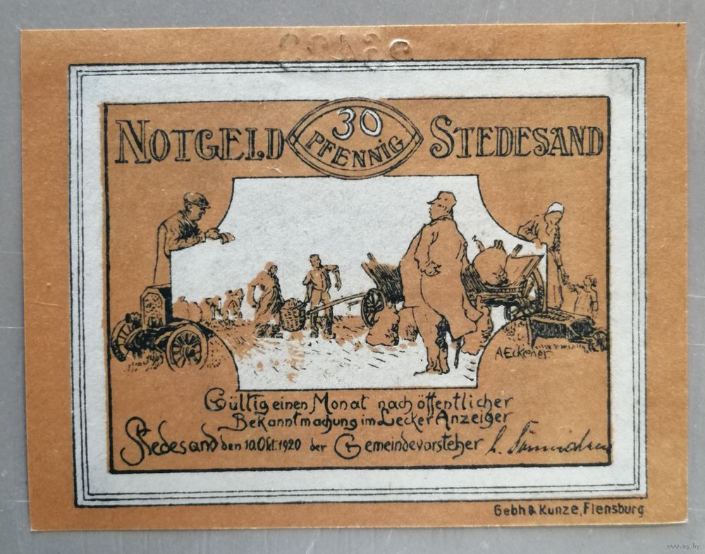 Германия, нотгельды, 30 пфеннигов 1921 год, Стедесанд (Stedesand), Katalognummer: Mehl Grabowski 1259.1.