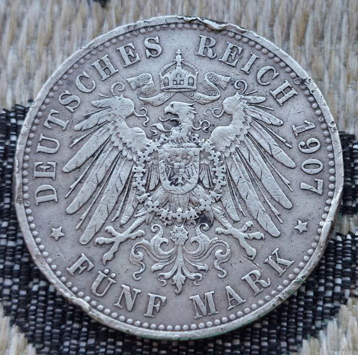 Германия 5 марок 1907 года, А. Серебро! Сторгуй за свою цену, предложи обмен! S-100