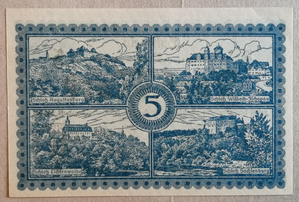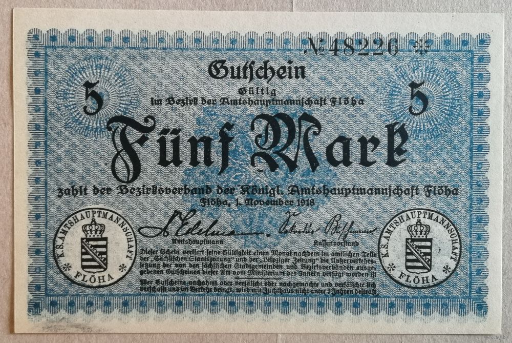 Германия 5 марок 1918 г Флёа (Flöha) 146.01.b, № # * Reihe B, аUNC, В/З