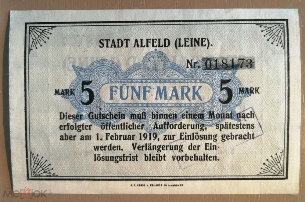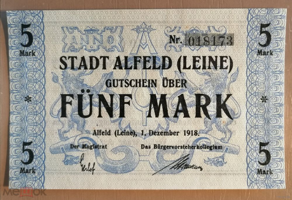 Германия, 5 марок 1918 год, Альфельд (Alfeld (Leine)), 008.02a, (114 х 74 мм)